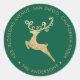 Gold Glitter Reindeer Green Return Address Holiday Round Sticker.