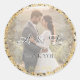Celebrate your special day with a touch of glamour! This elegant circular wedding favor sticker features a shimmering gold glitter and confetti border, framing your favorite couple's photo in a soft, romantic glow.