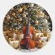 Pegatina Redonda Golden Christmas Tree, Gifts and Violin