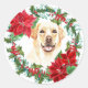 Pegatina Redonda Golden Lab Poinsettia Holly Holiday Wreath