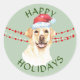 Pegatina Redonda Golden Labrador Recuperar Santa Hat Felices Fiesta