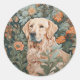 Pegatina Redonda Golden Retriever al estilo de William Morris