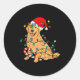 Pegatina Redonda Golden Retriever Dog Christmas Lights Xmas Pet Dog