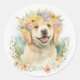 Pegatina Redonda Golden Retriever En Laurel Wreath