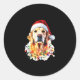 Pegatina Redonda Golden Retriever Funny dog Christmas Santa Hat lig