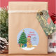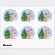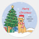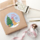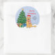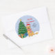 Pegatina Redonda Golden Retriever y el árbol de Navidad