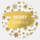 Pegatina Redonda Golden Sparkling Snowflakes Feliz Navidad