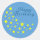 Pegatina Redonda Golden Starry Moon en Picton Blue Happy Birday