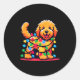 Pegatina Redonda Goldendoodle Christmas Tree Xmas Lights Golden Doo