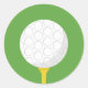 Este pegatina presenta un gráfico vectorial de una pelota de golf en un campo de golf, en un fondo verde.