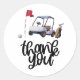 Pegatina Redonda Golf Gracias con carro y bandera
