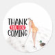 Pegatina Redonda Golf Gracias con texto y bandera Mujer Golfer