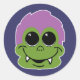 La goblin sonriente Adorable tiene piel verde, pelo morado funky, colmillos y grandes ojos dulces. Un regalo divertido para Halloween o todos los días.