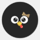 Pegatina Redonda Googly-eyed Turkey With Leopard Bow, Funny Cartoon