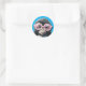Pegatina Redonda Gorila pequeño con anteojos rosados Backgro azul o