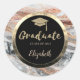 Pegatina Redonda Gorrito de graduación Glitter Gold, Mármol Roca