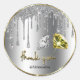 gotas de brillo gracias Pegatina de redondeo clásico de oro plateado.