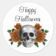 Gothic Floral Skull Halloween Round Sticker.