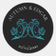 Pegatina Redonda Gothic Rose Teal Black Wedding