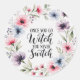 Este caprichoso pegatina presenta una vibrante acuarela floral con el mensaje Once You Go Witch You Never Switch.