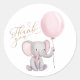 Pegatina Redonda Gracias a Cute Elephant Pink Balloon Baby Shower