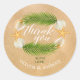 Pegatina Redonda Gracias a la boda tropical de arena fina y lluvia