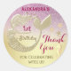 Pegatina Redonda Gracias a la sirena de cumpleaños Pink and Gold
