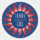 Estrellas y rayas rojas, blancas y azules en un diseño de fuego audaz. Excelente Gracias a los pegatinas con su nombre comercial para adjuntar a las compras o cobros de su cliente. Excelente manera de publicitar y mostrar a sus clientes que aprecia su negocio.