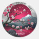 El "Pegatina de agradecimiento al estilo japonés" presenta un diseño sorprendente en un fondo oscuro. Un sol rojo vibrante prepara la escena. El diseño incluye una rama de flor de cerezo con flores delicadas y majestuosas montañas grises, que capturan la serena belleza de Japón. El pegatina muestra el texto de personalizable "Gracias" en la parte superior, con "あ り が と" (Gracias en japonés) debajo. Ideal para expresar aprecio con un toque de elegancia, este pegatina es perfecto para agregar un agradecimiento personal a cualquier regalo o mensaje.