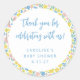 Pegatina Redonda Gracias Baby Shower, Personalizado floral Boho Yel