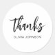 Gracias Simple Pegatina Redondo Clásico Blanco Negro Moderno. Personalice con su nombre personalizado.