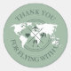 Pegatina Redonda Gracias Boda de Viajes Mapa Mundial Boho Sage Gree