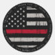 Pegatina Redonda Gracias, bombero de bandera roja delgada