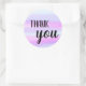 Este pegatina bonito es perfecto para sellos para sobres, regalos de agradecimiento y más! Una acuarela pastel de tonos claros y azul claro, rosa y violeta pálida cubre el pegatina. Sobrepuesto el mensaje "gracias" en negro, en un estilo broche de rebote que combina la inscripción en bloques y guiones.