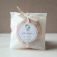Gracias pegatinas por cualquier evento (mostrado aquí para un Baby Shower pero todos los campos de texto son personalizables). El diseño incluye un elegante jarrón de jengibre lleno de flores de primavera en tonos azules y blancos.
