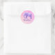 Un pegatina de agradecimiento con una foto de un elefante morado pintado a mano hecho en acuarelas. Esta imagen tiene las flores de pintura de acuarela clásicas donde la pintura se esparce en patrones aleatorios, una característica que hace que los acuarelas sean tan únicos. El fondo también es un diseño de color de agua con gradiente rosa claro que crea un agradable contraste.