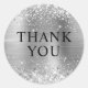 Crea tus propias etiquetas de agradecimiento para fiestas. Brillante plateado falso y glamuroso en los bordes superior e inferior, sobre un degradado de lámina metálica de estilo acero inoxidable falso. Personaliza los estilos de fuente para crear tu propio diseño de etiqueta de favor para su celebración especial. Una caligrafía clásica elegante combinada con una fuente serif en mayúsculas.