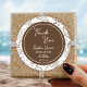Estas calcomanías redondas clásicas "Thank You" con conchas de mar marrón destacan un fondo marrón cálido cubierto de garabatos caprichosos de conchas marinas, estrellas de mar, corazones y destellos para un encantador ambiente costero rústico. En el centro, un círculo marrón sólido delineado por un anillo blanco delgado muestra su texto editable. En el interior, la frase "Gracias" aparece en la parte superior, seguida de espacio para agregar el nombre de la novia, "Despedida de soltera", una ilustración de concha marina y la fecha de la celebración. Estas calcomanías son perfectas para sellar bolsas de favores, empaquetar regalos, decorar sobres o agregar un toque costero a los detalles de la fiesta. Todo el texto y los colores son totalmente personalizables.