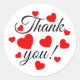 Gracias Pegatina Redondo Clásico de los Corazones Rojos.