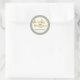 Un personalizado redondo gracias pegatina con letra de escritura moderna en un falso color de Relieve metalizado dorado. Inserte sus nombres en lugar del texto de ejemplo que se muestra en la plantilla de diseño. Este pegatina es una buena opción para los favores de boda u otras ocasiones para expresar su agradecimiento. (Tenga en cuenta que se trata de una imagen impresa digitalmente de alta calidad y no de un Relieve metalizado de oro real.)