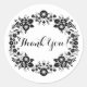 Una hermosa etiqueta de agradecimiento floral en un diseño de negro y blanco para envíos o bolsas de favores de fiesta
