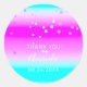 Pegatina Redonda Gracias Fecha Azul Rosa Ombre Oceánico