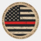 Delgado Línea Roja Gracias Pegatinas - Estados Unidos Diseño de la bandera estadounidense en los colores de la bandera del bombero , diseño angustiado en el fondo rústico de la madera . Este bombero gracias a su pegatina es perfecto para agregar el toque final a los regalos y favores en sus celebraciones de retiro de bomberos o bomberos, para mostrar la apreciación del bombero por el servicio dedicado y los departamentos de bomberos. DERECHOS RESERVADOS © 2020 Judy Burrows, Black Dog Art - Todos los derechos reservados. Luminosa bandera rusa de la línea roja bombero Gracias Pegatina redondo clásico