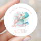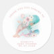 Pegatina Redonda Clásica Gracias Florales de Acuarela Ballenas Baby Shower