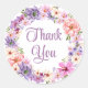 gracias flores moradas color agua elegante Pegatina redondo clásico genial para cualquier ocasión: cumpleaños, boda y más...