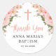Pegatina Redonda Gracias Flores Rosadas Bautismo Chica