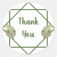 Este pegatina de agradecimiento presenta hojas verdes pintadas en acuarelas y un patrón geométrico verde oscuro. Ideal para bodas, duchas de novias o duchas para bebés. Material gráfico original de Wilderness Store