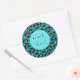 Pegatina Redonda Gracias Groovy Batik Turquoise Flower Pattern