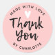 Pegatina Redonda Gracias hecho a mano con amor rosa
