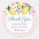 Gracias pegatinas por cualquier evento (mostrado aquí para un Baby Shower pero todos los campos de texto son personalizables). El diseño presenta limones acuarelas con flores de color rosa bonito con azul cobalto y texto rosa fucsia.